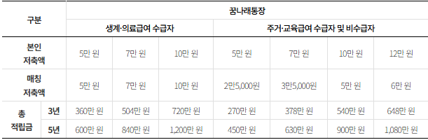 부모가 5·7·10·12만 원을 3·5년간 매월 저축하면 생계·의료급여 수급자의 경우에는 부모의 저축액만큼, 주거·교육급여 수급자 및 비수급자는 부모 저축액의 50%를 서울시 예산과 시민 후원금으로 추가 적립해주는 방식.