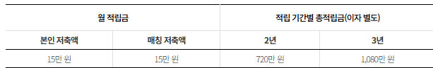 청년이 15만 원을 2~3년간 저축하면 서울시에서 15만 원을 추가로 적립해주는 방식이다.
