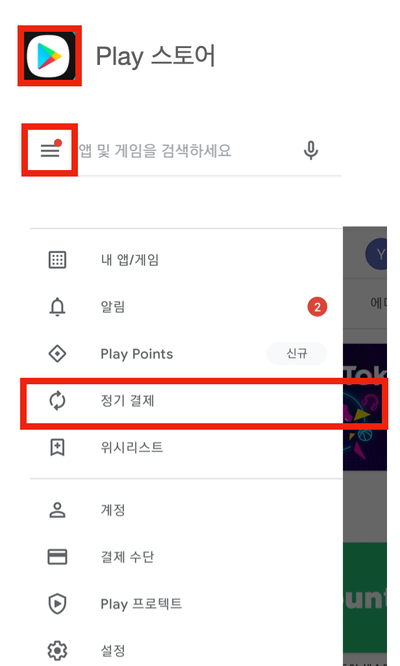 - Google Play 스토어 앱 실행 → 우측 상단 프로필 아이콘 탭